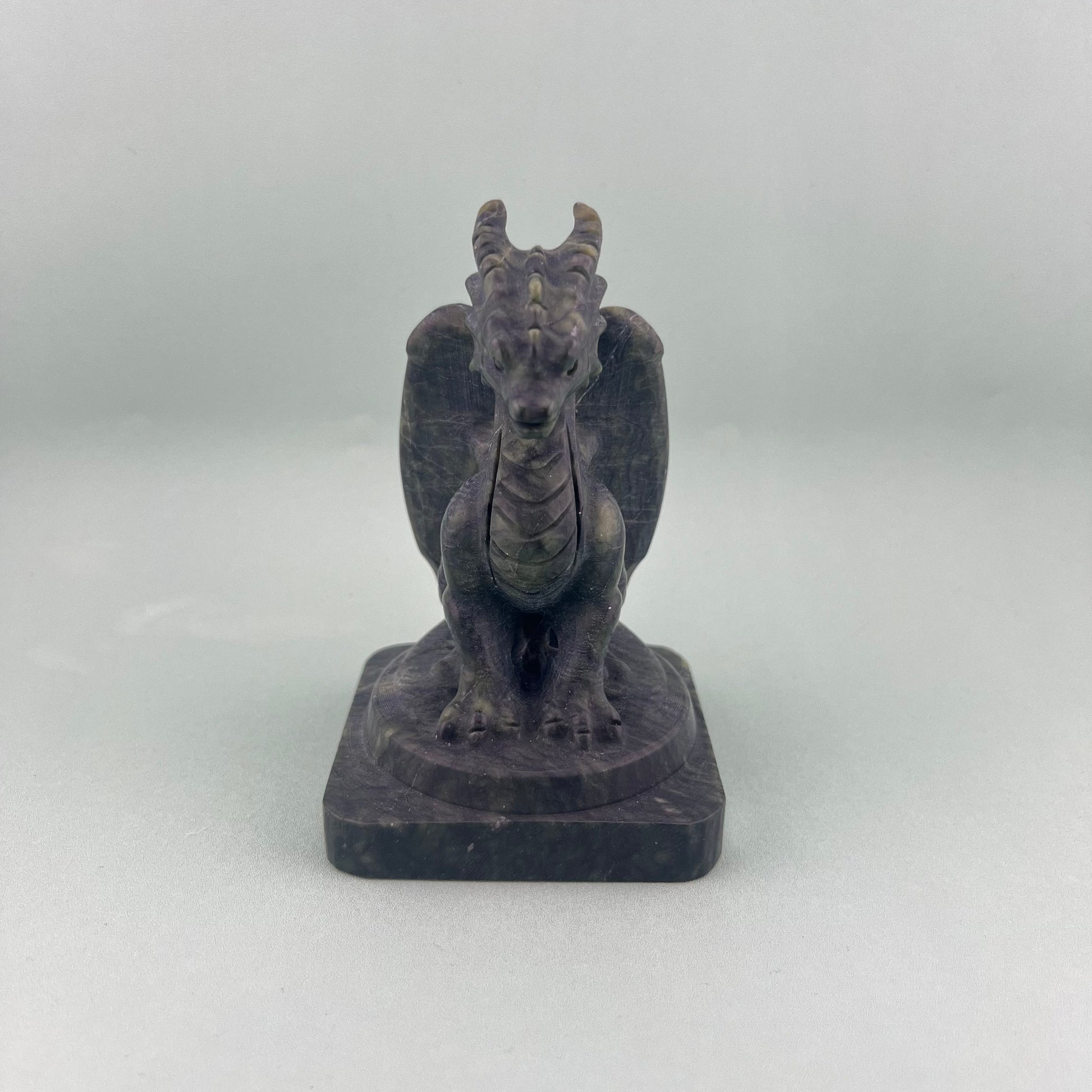 Each piece features rich green tones with subtle natural marbling, bringing depth and character to the detailed dragon design. The intricate carving highlights powerful scales, flowing movement, and bold features, making every dragon completely unique. A statement piece that adds elegance, strength, and artistry to any crystal or décor collection.