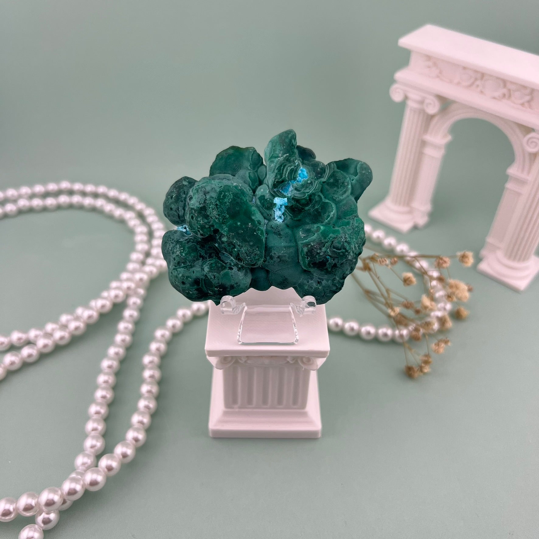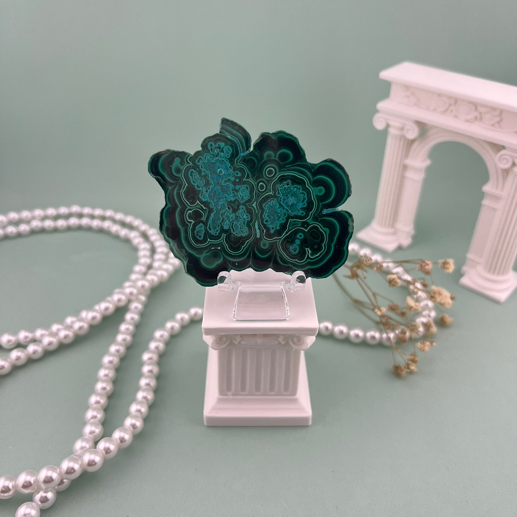 Malacholla is a stunning fusion of Malachite and Chrysocolla, known for its vibrant mix of deep greens and bright ocean blues. Each slab highlights flowing patterns and natural color shifts that feel like miniature landscapes. With its smooth finish and bold presence, Malacholla brings a unique artistic touch to décor, crystal grids, and display collections. No two pieces are ever alike, making each one a standout treasure.