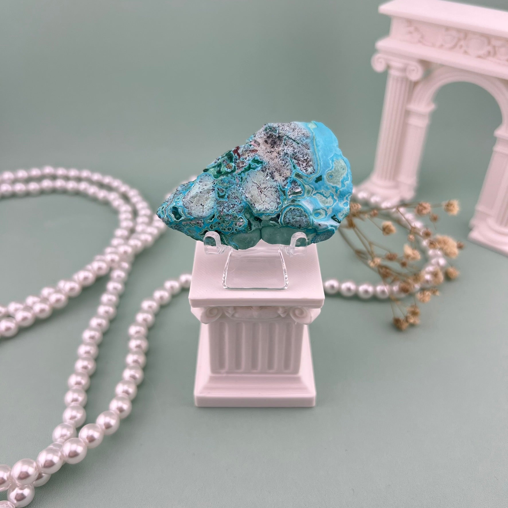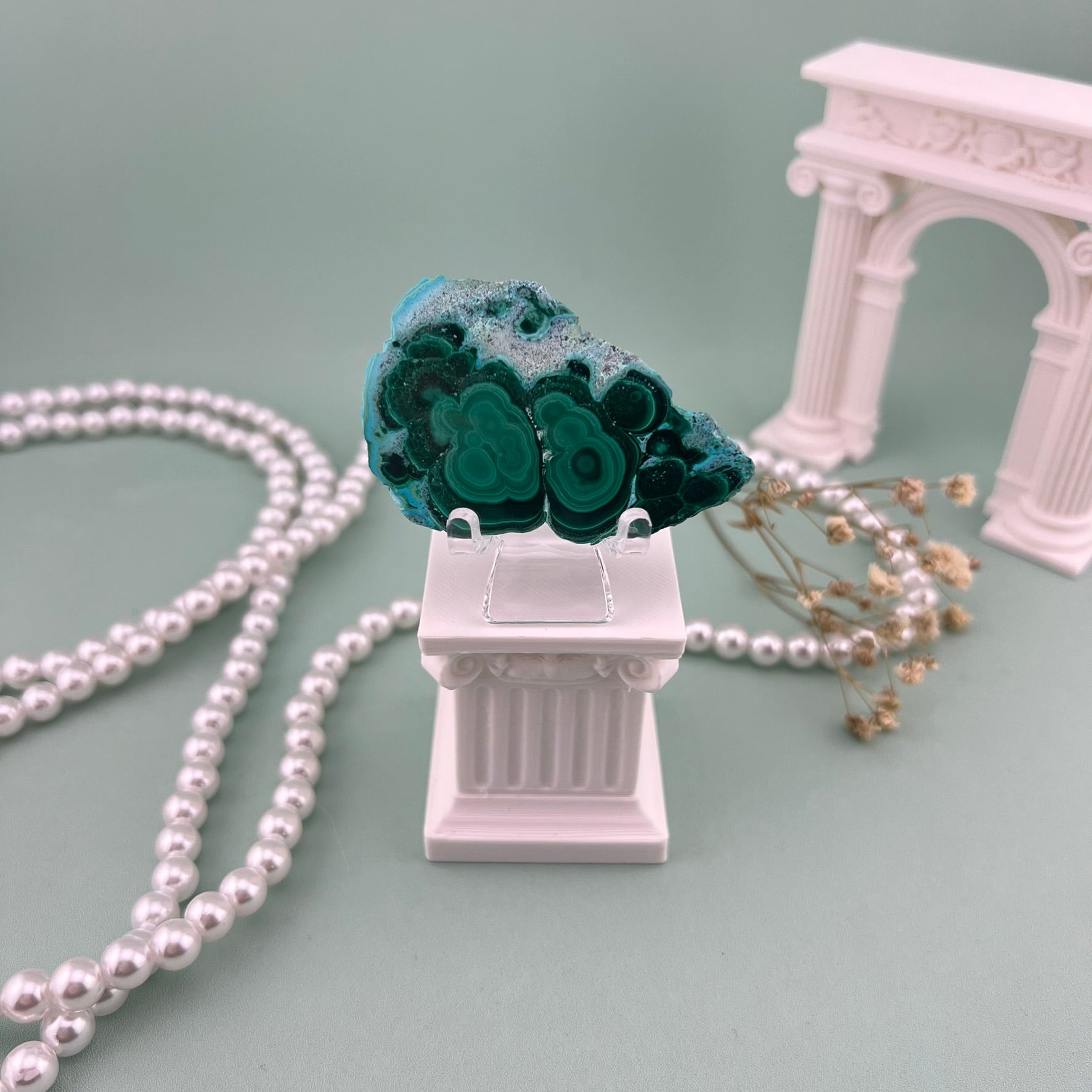 Malacholla is a stunning fusion of Malachite and Chrysocolla, known for its vibrant mix of deep greens and bright ocean blues. Each slab highlights flowing patterns and natural color shifts that feel like miniature landscapes. With its smooth finish and bold presence, Malacholla brings a unique artistic touch to décor, crystal grids, and display collections. No two pieces are ever alike, making each one a standout treasure.