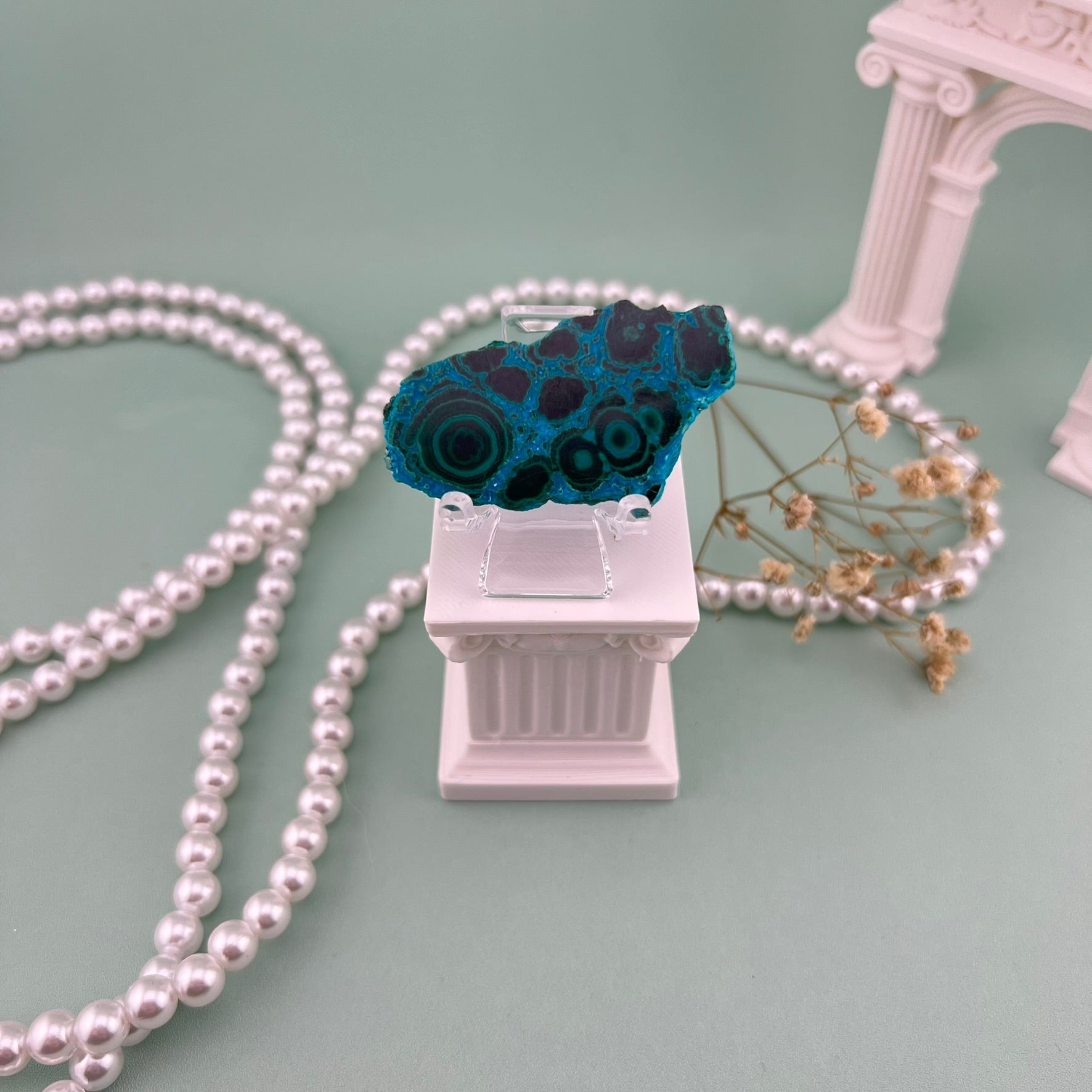Malacholla is a stunning fusion of Malachite and Chrysocolla, known for its vibrant mix of deep greens and bright ocean blues. Each slab highlights flowing patterns and natural color shifts that feel like miniature landscapes. With its smooth finish and bold presence, Malacholla brings a unique artistic touch to décor, crystal grids, and display collections. No two pieces are ever alike, making each one a standout treasure.