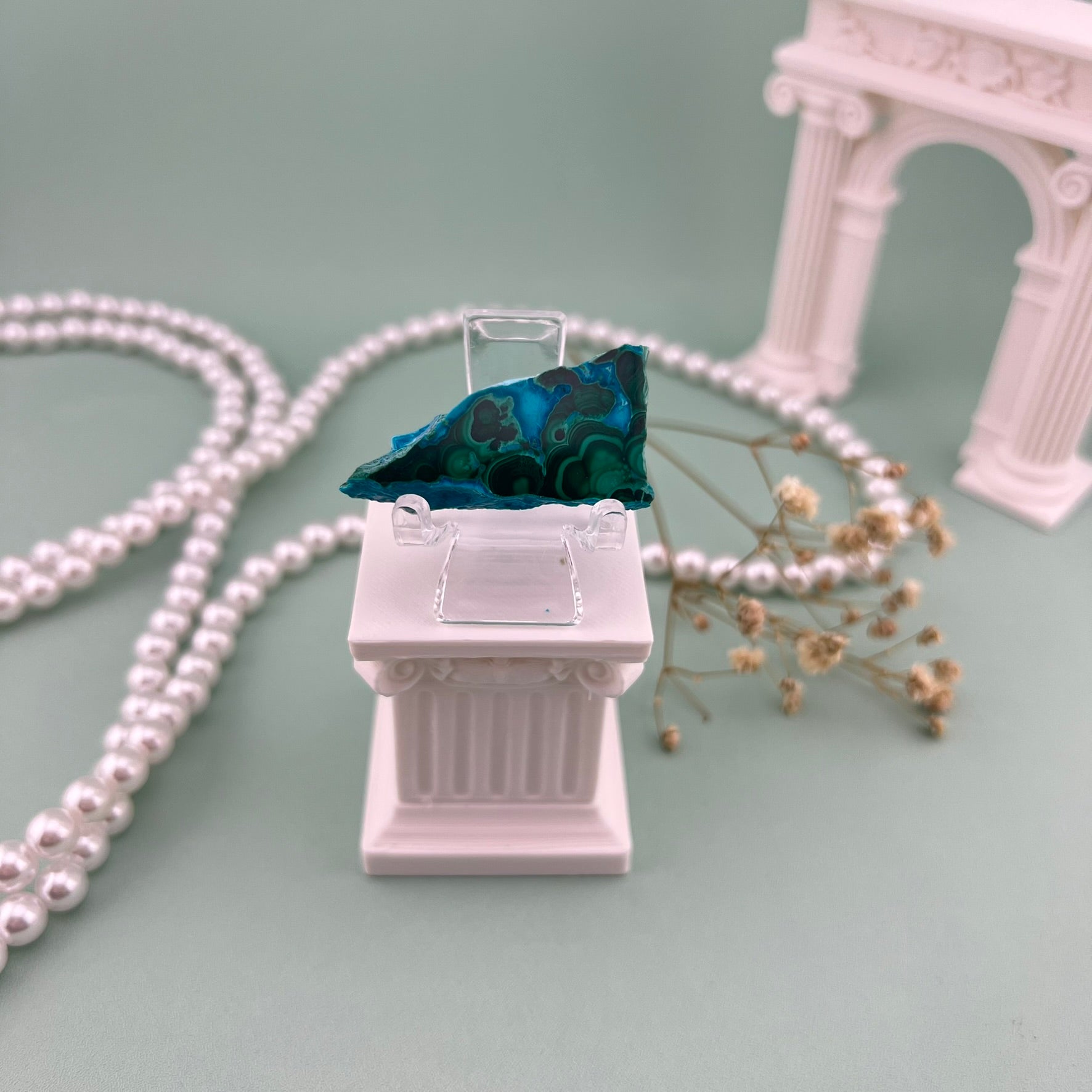 Malacholla is a stunning fusion of Malachite and Chrysocolla, known for its vibrant mix of deep greens and bright ocean blues. Each slab highlights flowing patterns and natural color shifts that feel like miniature landscapes. With its smooth finish and bold presence, Malacholla brings a unique artistic touch to décor, crystal grids, and display collections. No two pieces are ever alike, making each one a standout treasure.