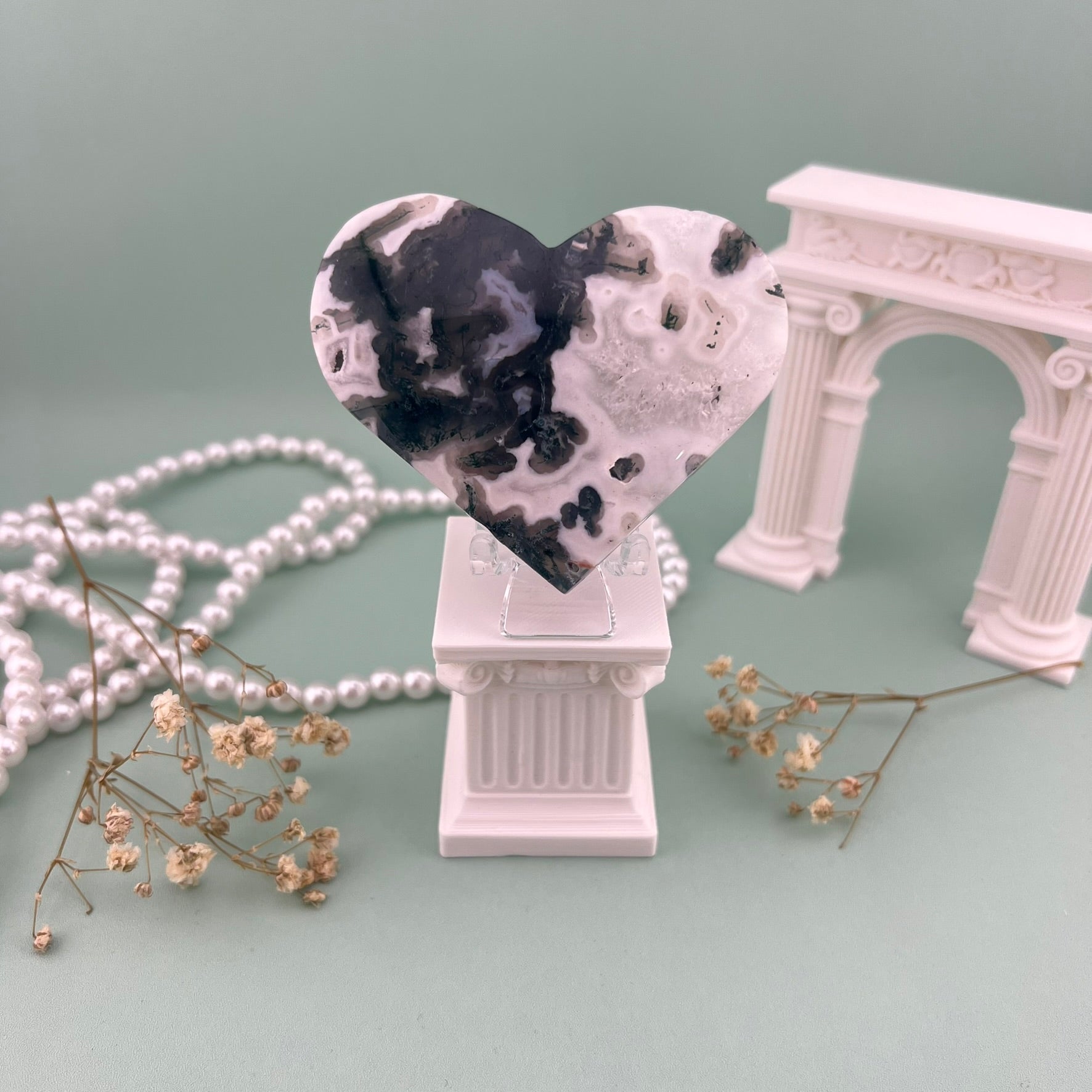 This beautiful piece showcases rich green moss-like inclusions flowing through milky white and translucent agate. The height and natural patterning make it an elegant display piece, with unique formations that ensure no two towers are ever the same. A calming, earthy addition to any crystal or décor collection.