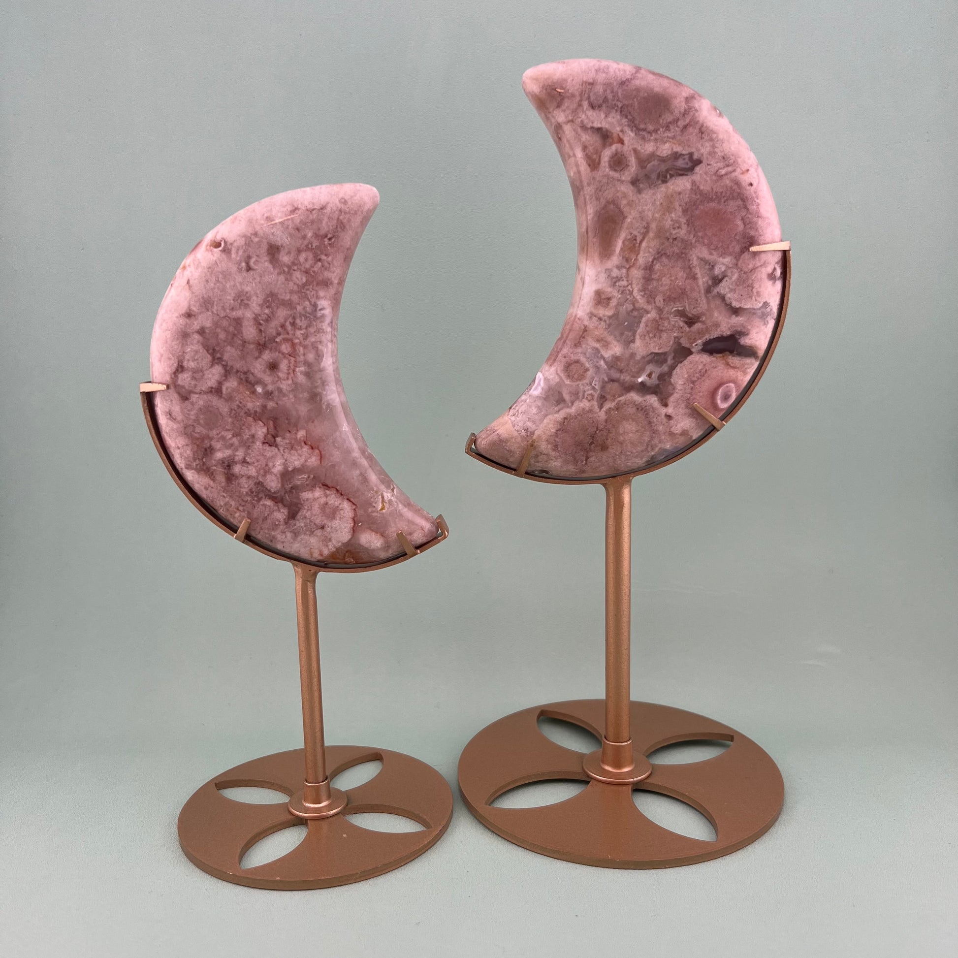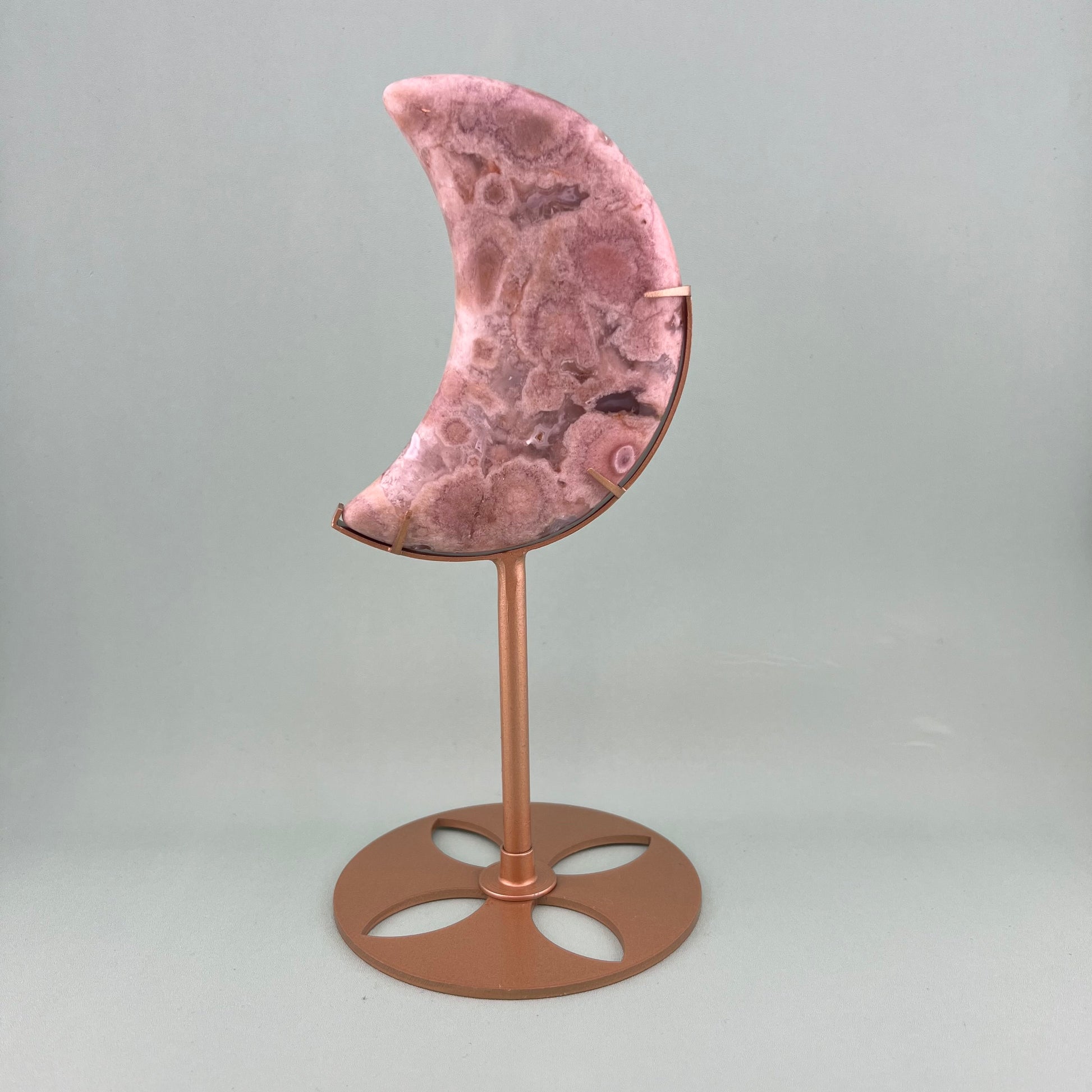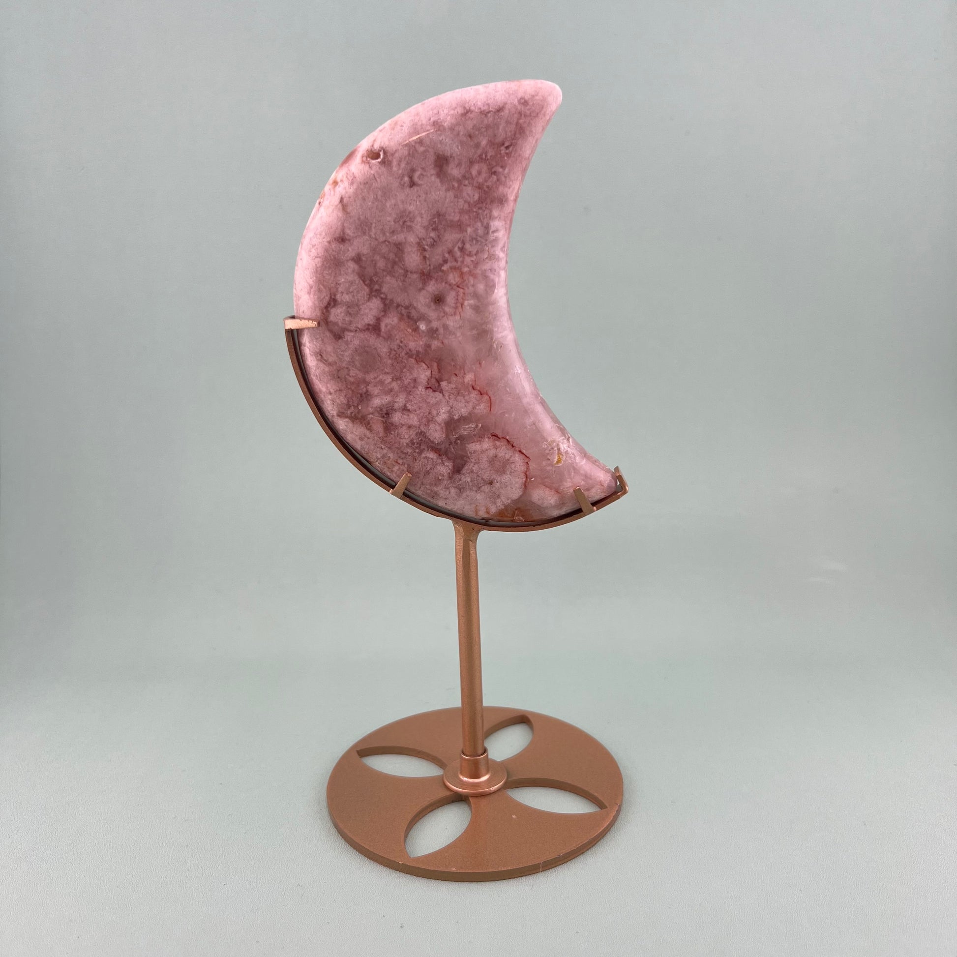 A soft and dreamy crescent moon carved from a combination of pink amethyst and flower agate. Each piece shows delicate patterns, gentle pink tones, and natural inclusions that make every moon completely unique. A beautiful statement piece for any crystal display.