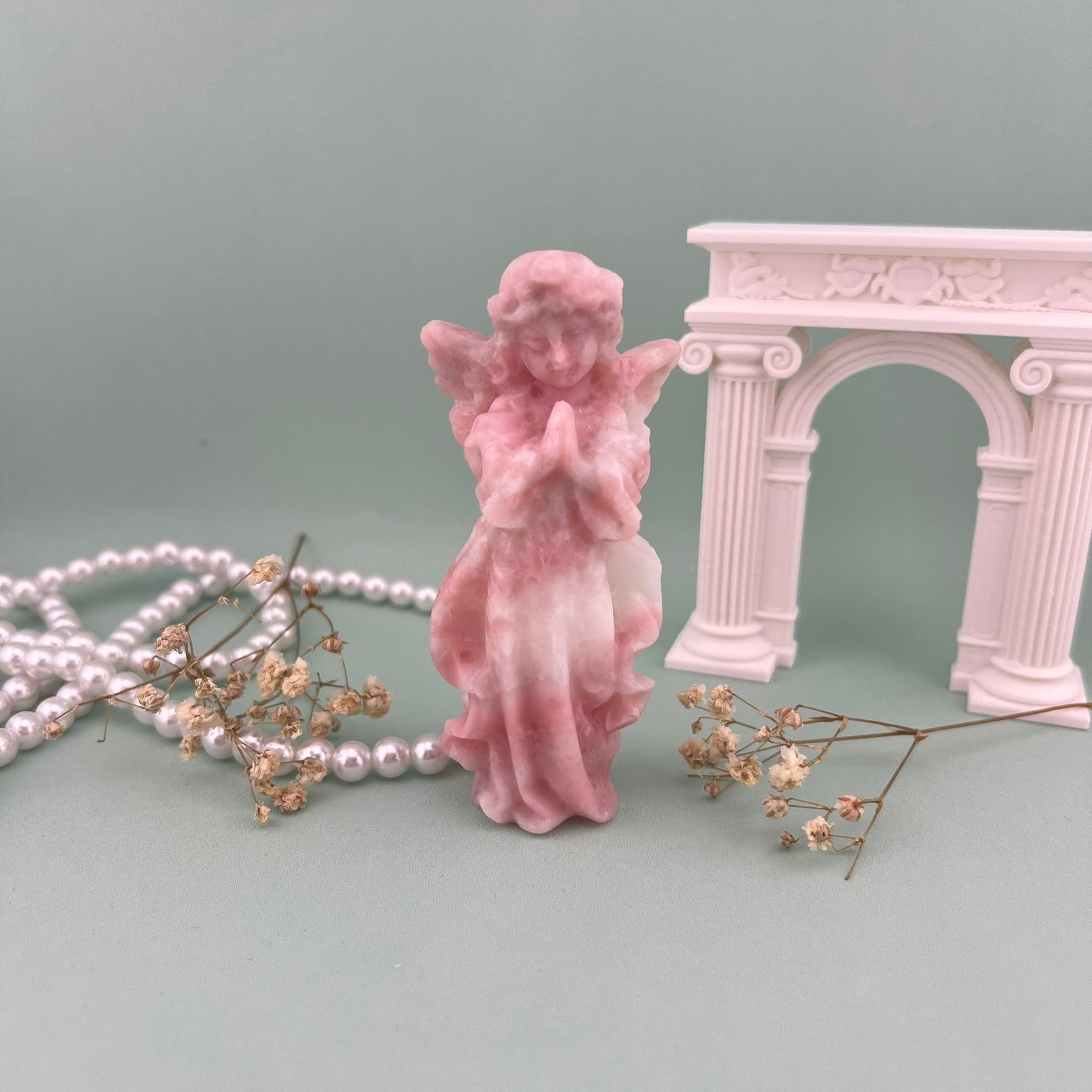 Soft Pink Opal angel carving with a gentle, soothing color that brings calm to any space. Each piece is polished to a smooth finish, showcasing natural variations that make it truly unique. The angel shape offers a comforting presence, perfect for bedside décor, gifting, or carrying a little peace and protection wherever you go.