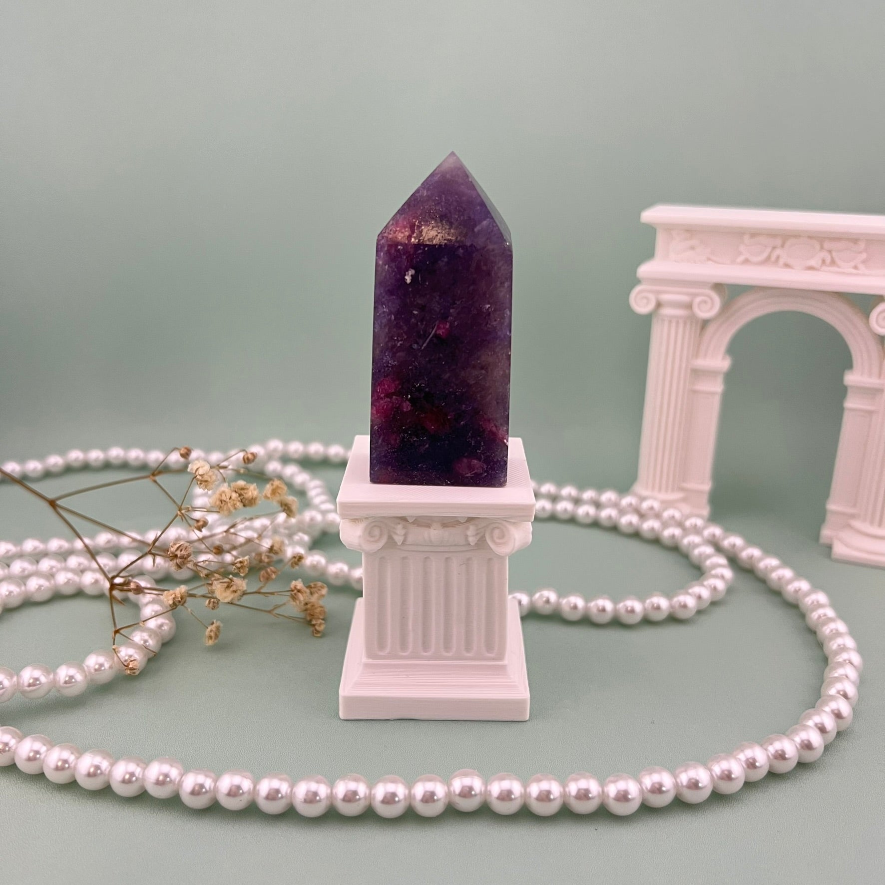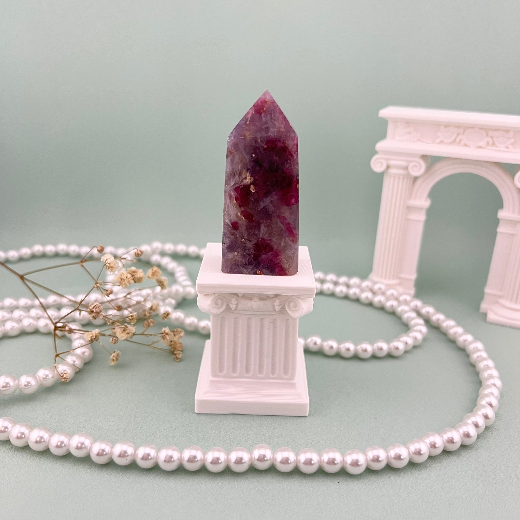 Unicorn Stone towers with soft pastel patterns in shades of pink, purple, and blue. Each piece is polished to a smooth finish and shows unique natural color blending that gives this stone its magical look. These towers make beautiful display pieces and add a calming, dreamy touch to any crystal collection or décor setup.